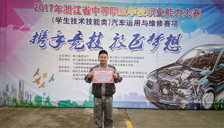 4月9日至11日,2017年浙江省中等職業學校職業能力大賽“汽車運用與維修”項目比賽在寧波舉行,交通學校學生李佳浩喜獲汽車機電維修競賽項目一等獎,并成功晉級國賽。