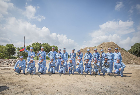 為圓滿完成此次微視頻的拍攝工作,國鴻公司高度重視,精心安排,從5月中旬接到大賽通知到9月初正式成片,歷經4個月,經歷了確立作品方向,人物摸底篩選,對人物事跡進行走訪、調查、梳理,劇本撰寫,視頻拍攝及后期制作等多個環節。拍攝期間時值正夏,烈日當空,拍攝地條件艱苦,劇中的演員都是公司各單位的員工。為了更好地呈現這部作品,員工們克服各種困難,合理安排好拍攝和本職工作。在似火的驕陽下,按攝制組的要求一遍遍地重復拍攝,在土堆里摸爬滾打,在不通風的場地反復走位,幾個小時的拍攝結束,汗水和泥土混在了一起,軍服上結起了鹽花,身上也布滿了蚊蟲叮咬的痕跡。雖然拍攝過程艱辛,但員工們都覺得這是一場令人難忘的經歷,這不僅是一次微視頻的拍攝,也是國鴻人不畏艱苦、踏實肯干的品格接力,更是“不忘初心、牢記使命、永遠奮斗”精神的傳承!
