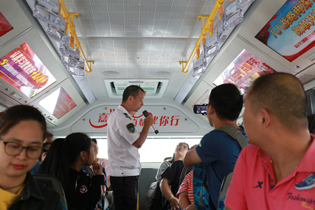 在第二站,大家走進公交車廂,聽現(xiàn)場工作人員講解“輔助公交”刷臉乘車等高科技功能。今年上半年我市首次推行輔助公交,以嘉興一中實驗學(xué)校為試點,打造嘉興“智慧公交”出行服務(wù)新模式,主要目的是為了緩解學(xué)校周邊交通擁堵問題,解決學(xué)生放學(xué)期間的集中性客流需求,并在“試水”成功的基礎(chǔ)上,在下半年繼續(xù)推行輔助公交,線路條數(shù)從原來的20條增至29條,選擇乘坐的學(xué)生也從原來的225名增至581名。大家聆聽現(xiàn)場講解后對輔助公交的開行背景及科技功能有了更進一步的了解,并紛紛上車體驗了刷臉乘車。