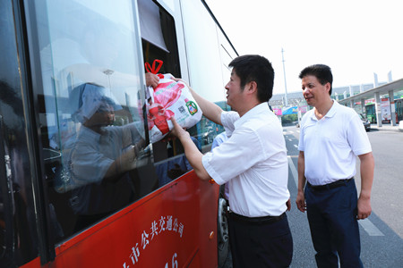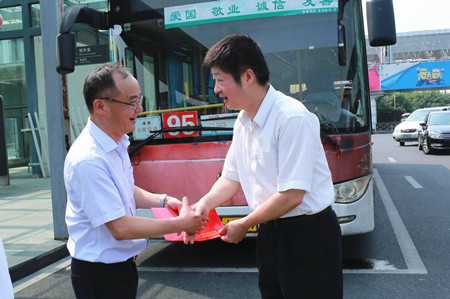 7月28日上午,祝亞偉副市長一行深入基層,向冒著高溫酷暑堅守在工作崗位上的公交一線員工表示感謝和慰問,并送上防暑慰問品和慰問金。集團公司董事長沈蘭冠、公交公司相關(guān)負責人陪同慰問。