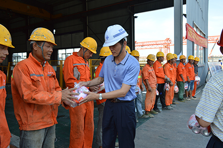 一線工友們拿著防暑降溫物品,個(gè)個(gè)喜笑顏開,深切的感受到了領(lǐng)導(dǎo)的關(guān)懷,在酷熱的夏日,心頭泛起清涼的氣息,紛紛表示將全力確保生產(chǎn)安全及施工質(zhì)量,為嘉興工程建設(shè)貢獻(xiàn)一份力量。