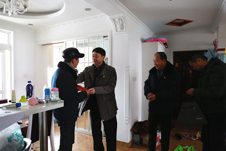 沈利農一進門就握住了困難職工壽旭亮的手,詳細詢問了壽旭亮和其同樣身患重病的妻子的身體健康狀態和家庭生活情況,為他們送去了慰問金和慰問品。慰問中,沈利農囑托壽旭亮和其妻子要堅定信心,振奮精神,堅強面對生活,保重好身體,并祝愿他們度過一個歡樂祥和的春節。