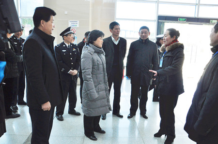 2月12日,市委書記魯俊帶隊來到客運中心檢查國鴻汽運公司春運安全工作,市交通運輸局局長顧國強、集團公司董事長沈蘭冠、市運輸管理局副局長傅學練、國鴻汽運公司相關負責人陪同檢查。