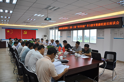 9月28日下午,嘉蕭公司黨支部組織灣北二期項(xiàng)目全線參建施工、監(jiān)理和設(shè)計(jì)單位代表,在TJ02標(biāo)項(xiàng)目部召開灣北二期項(xiàng)目“共學(xué)共建”學(xué)習(xí)教育暨廉政建設(shè)座談會(huì),部署“共學(xué)共建”學(xué)習(xí)教育和工程保廉工作。集團(tuán)公司黨委副書記李海明參加會(huì)議。