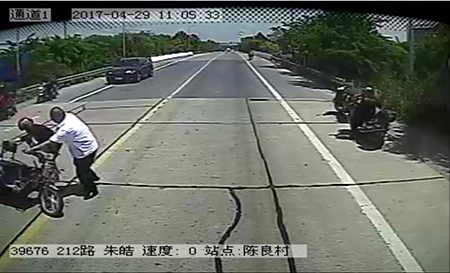 朱師傅馬上靠邊停車,對車上乘客說了一聲“不好意思”,開了車門就飛奔過去,卯足了勁搬掉了那輛壓在傷者身上的電瓶三輪車。車上的乘客看到了這一幕都紛紛下車來幫忙。