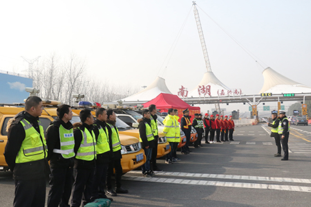 9點30分,嘉紹管理處和市高速交警三大隊、高速路政一中隊聯合主辦2018年春運交通安全啟動儀式。嘉紹管理處、南湖收費站黨員、團員及高速交警、高速路政等23名志愿者莊嚴宣誓,承諾進一步加強春運期間道路交通安全管理工作,確保人民群眾過上一個祥和、安全的新春佳節。“師傅,喝杯熱姜茶吧!”寒冬中,驛站的工作人員和志愿者為過往司乘遞上一杯暖暖的姜茶,送上一副狗年福字。貨車司機王師傅說:“這雪跡未消的寒冷早晨,喝杯熱姜茶,真暖和!拿上剛寫的新春福字,貼在家門口,新的一年福到嘍!”
